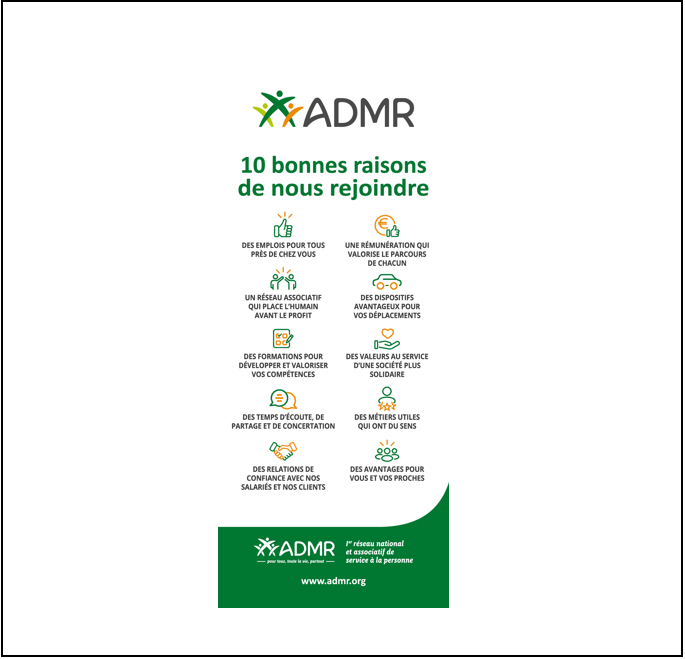 Le kakemono, ou roll-up, est un support de communication essentiel pour capter l’attention de vos candidats et de vos prospects lors d’événements. Que ce soit pour renforcer la visibilité de notre marque, promouvoir l’ADMR ou dynamiser vos salons, il constitue un atout stratégique. Simple à installer, il vous accompagne aussi dans votre hall d’accueil pour affirmer votre présence et transmettre nos valeurs.