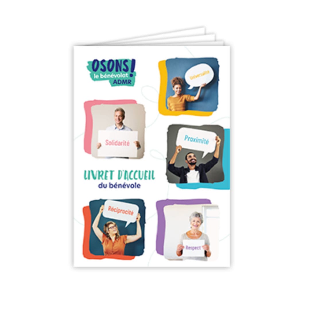 Véritable bible du bénévolat ADMR, ce livret d’accueil s’adresse à tous nos bénévoles. Il facilite leur intégration ; étape charnière dans la gestion et la fidélisation des bénévoles ADMR au sein de notre réseau. Il permet à chacun de s’imprégner de l’histoire, de la culture, du projet et des valeurs de notre mouvement. Il constitue un repère, une source d’information fiable et indispensable tout au long de leur parcours. Son format A4+ s’harmonise parfaitement avec son homologue, le livret d’accueil client. Il comporte également en 3e de couverture un rabat dans lequel vous pourrez insérer différentes annexes.